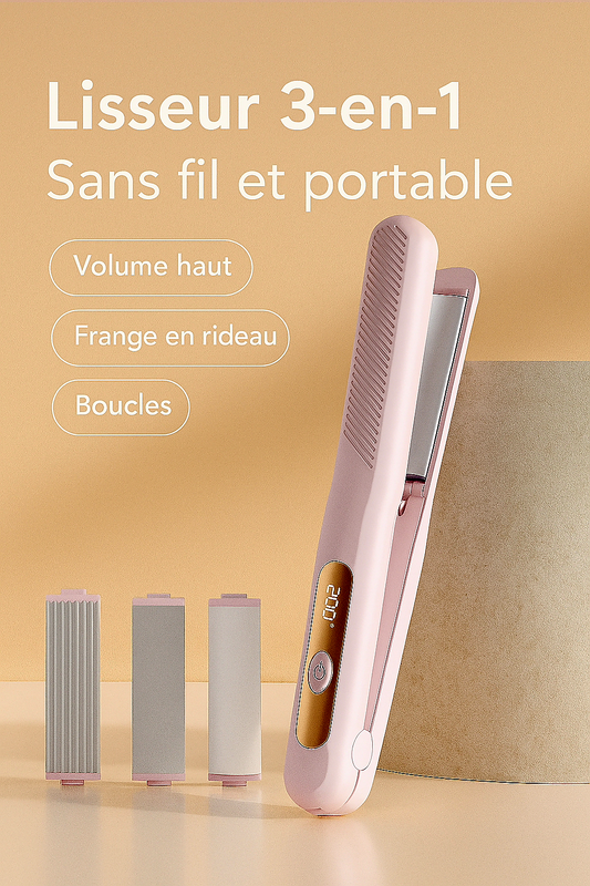 Lisseur & Boucleur Sans Fil 3-en-1 avec Têtes Interchangeables